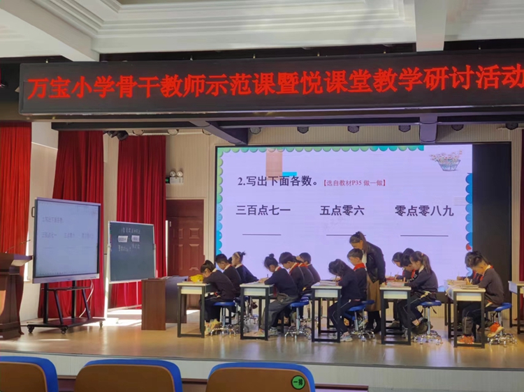 桃李芬芳,青春飞扬。为了推进教育数字化,践行新课标理念,落实“双减”政策,推动课堂教学改革,促进青年教师成长。4月4日,万宝小学以“依托数字平台 构建智慧课堂”为主题,举办骨干教师示范课暨悦课堂教学研讨活动。