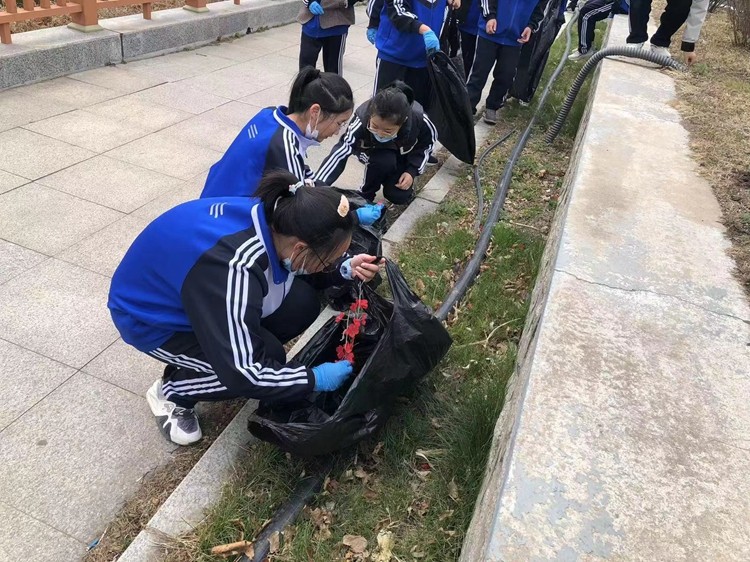 此次活动由王德红和毕崇辉老师带队,全体七年级学生组织有序的来到博览城,开展志愿服务。活动中,小志愿者们一丝不苟的清理博览城的枯枝败叶及各种垃圾。弯腰、下蹲、起身,是小志愿者们辛勤劳作的身影。劳动中所有人不怕脏、不怕累,经过2个小时的努力,劳动成果很有成效,博览城周边的各种垃圾被清理干净,看起来更加的干净整洁,受到了社会、家长的一致好评。
