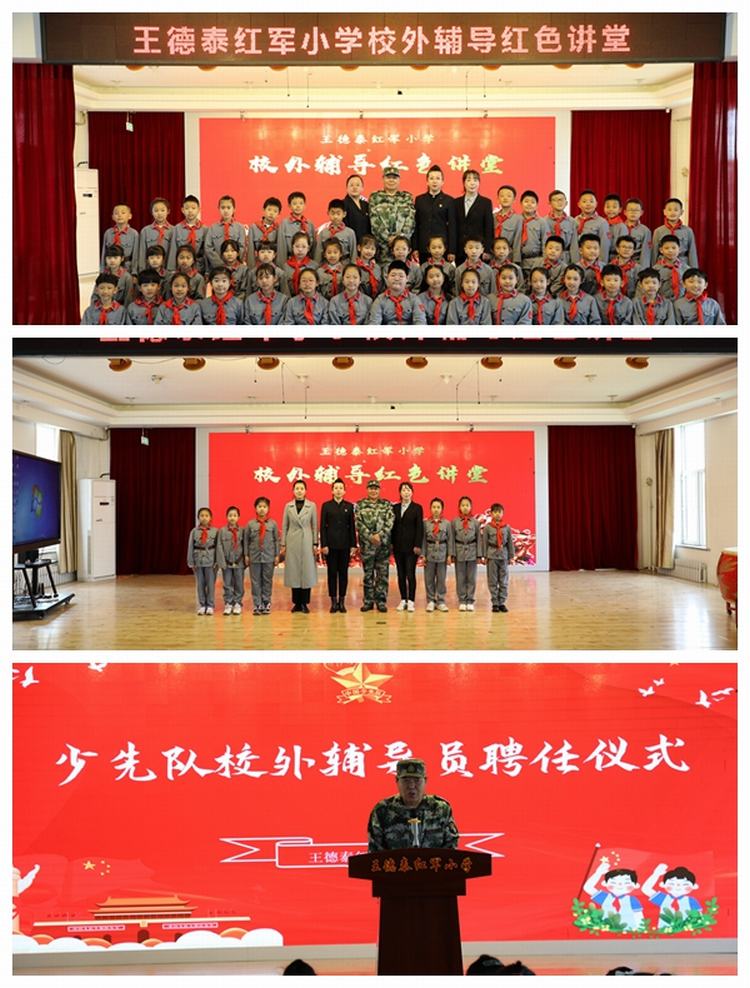 为贯彻落实《中共中央关于全面加强新时代少先队工作的意见》,切实加强少先队辅导员队伍建设,完善少先队校外辅导员队伍建设,构建资源有效整合、阵地有效利用、队伍有效动员、队员广泛参加的少先队社会化工作体系,4月25日,王德泰红军小学举行校外辅导员聘任仪式与红色讲堂活动。