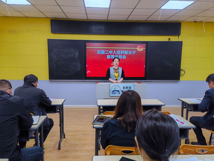 为进一步壮大学校团组织队伍,积极为团组织注入新鲜血液,增强团组织的凝聚力和战斗力,从而满足广大积极要求进步的青年学生加入团组织的愿望,4月24日,安图县第二中学召开入团积极分子推荐说明会。