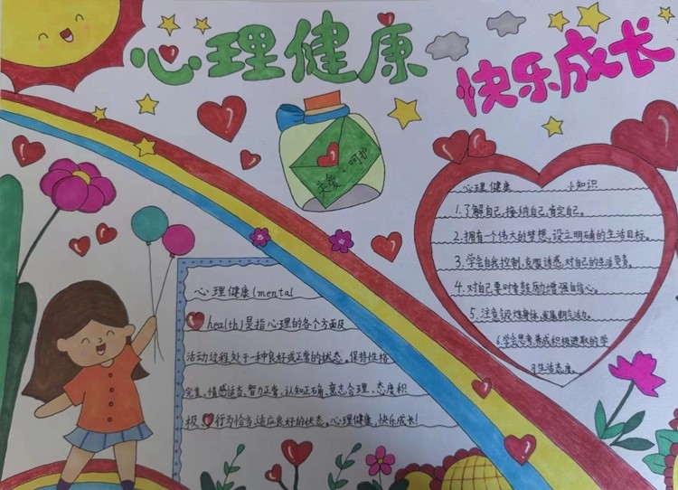 参赛的手抄报作品紧紧围绕心理健康教育主题进行创作,风格多元,色彩绚丽,具有很强的观赏性和感染力。在创作过程中,同学们通过阅读有关心理健康知识、上网查阅资料等方式,了解了心理健康的相关知识,借助手中的画笔绘制成了一幅幅版面精美、内容丰富、布局新颖、书写清晰的手抄报作品,为心理健康月活动增添了一抹绚丽的色彩。