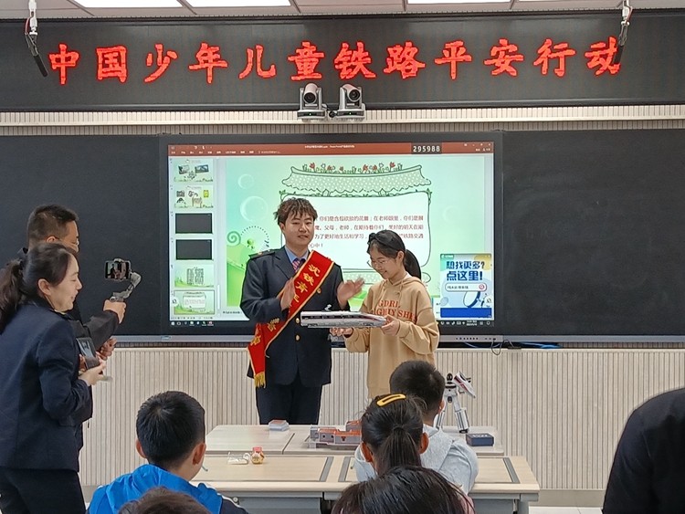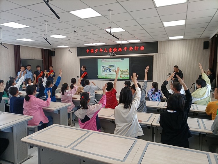活动中,铁警们结合学生好奇心强、活泼好动的特点,通过案例分析、展示科普漫画、播放路外安全视频、知识抢答等方式多角度进行“知路护路,平安校园”的知识宣传,并普及《铁路安全管理条例》和有关铁路安全规定。还向同学们发放宣传资料,并告诫同学们要珍爱生命、不上铁路玩耍、不攀爬钻越铁路防护栅栏、不向列车抛掷杂物等注意事项,进一步增强同学们的安全意识,以防止和减少铁路交通事故发生。同时,鼓励学生们将宣传单带回家与家长共同学习分享,确保实现“宣传一个学生,带动一个家庭,影响一个学校,安全一片区域”的目标。
