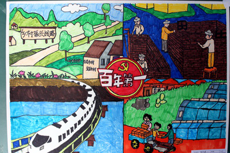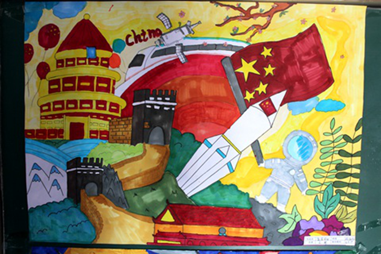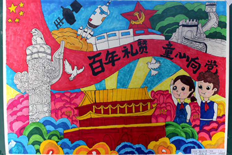 本次艺术展由校美术组承办,共展出绘画作品40余副、衍纸作品30余个、手工泥工作品20余款。本次活动的负责人刘德智老师首先在班级向学生介绍党的光辉历程,让学生了解党史,然后再激情创作。学生们在作品中描绘了很多和党史有关的元素,比如:承载着民族希望的小小红船;不怕牺牲、吃苦耐劳的长征红军;吹着抗日战争号角的士兵;宣布新中国成立时的天安门;代表着中国人民勤劳与智慧结晶的万里长城;还有新中国成立以后,在党的领导和号召之下,中国人登上了珠穆朗玛峰;大国工匠创造了上天下海、探索苍穹的国之重器,刷新记录的超级工程,代表中国智慧的中国高铁......这些珍贵的历史画面被他们或用画笔或用泥土记录在了自己的作品中。在构思、绘画、制作的过程中,学生们学习到许多党史知识,了解了中国共产党的丰功伟绩,他们纷纷表示要做一个爱党爱国、有责任心的新时代好少年!