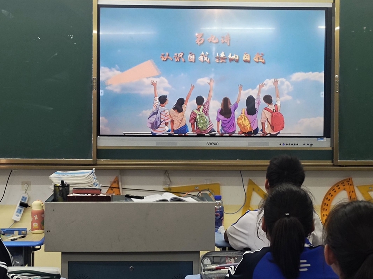 班会时间,各班班主任带领学生开展“悦纳自己,从心开始”的生命教育主题班会,组织学生观看国家中小学智慧教育平台上的心理健康资源,引导学生了解自己、接受自己、塑造理想中的自己,培养学生自尊、自信、自爱的品质。班会后,各班以“悦纳自己,从心开始”为主题出了一期黑板报,学生各显其能,结合各种心理知识制作出一幅幅图文并茂、趣味新颖的黑板报。