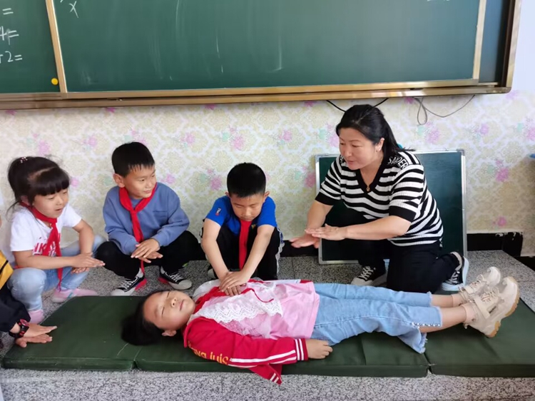 学校借助滚动屏、升旗仪式、广播站等形式反复宣传预防溺水知识内容,通过班会,老师用鲜活的案例讲解防溺水的重要性,利用课件让学生学习发生溺水时自救和互救的科学方法,并进行实际操作演练。