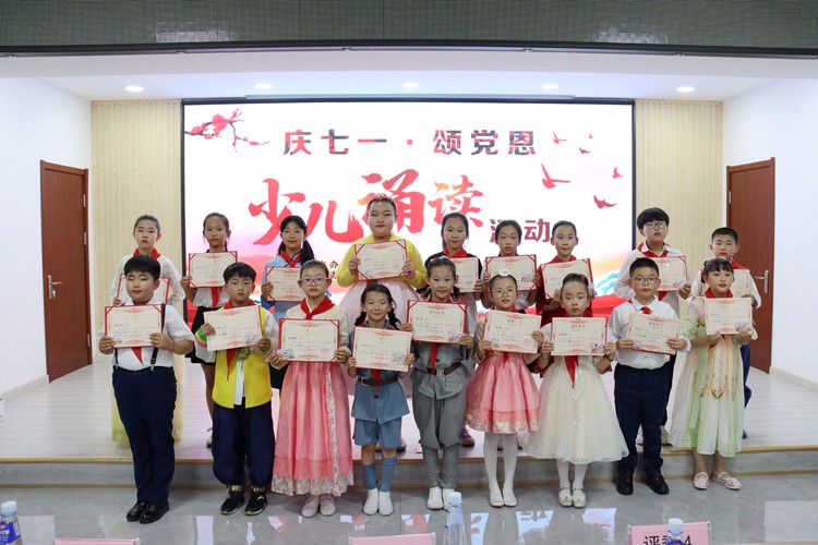 本次诵读比赛共有18名二到五年级的同学参加,伴随着或激昂或舒缓的音乐,同学们围绕党的百年奋斗历程,从嘉兴南湖的红船出发一路展开,南昌起义、井冈山上、抗日战争、解放战争、新中国成立、抗美援朝、社会主义现代化建设……一幅幅画卷逐渐展开,一段段历史向人们不断诉说:没有共产党就没有新中国。经过角逐,低年级组与高年级组分别评出一等奖一名,二等奖五名。