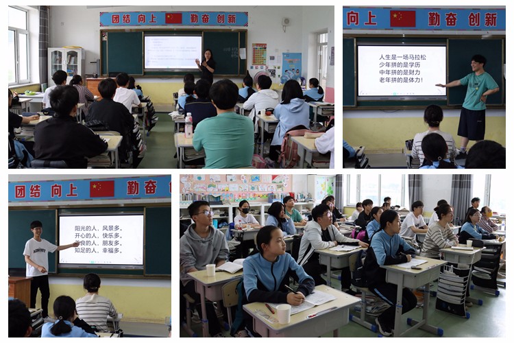 班主任李顺女首先对中考相关的规定与要求进行解读,希望同学们能够提高对中考的重视程度,提前准备好考试用具,考前清淡饮食,合理作息。并勉励学生争做身体好、心态好、精力好的备考“三好学生”,做有目标、有信心、有方法、有效率的冲刺“四有新人”。班主任发言结束后,学生们也上台发言,畅谈人生目标与梦想,以及我们要如何为之奋斗。畅所欲言的形式与风趣幽默的语言,让班级内的氛围瞬间活跃起来。借着这股愉快的气息,学生们以“跃动青春”的形式拍摄了一张互相鼓励的集体照。随后,班级内的学生们又进入到了紧张的复习之中。