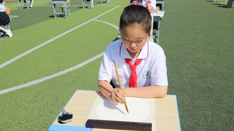 此次活动共分二个组别,低段铅笔字、高段软笔字。书写现场,孩子们沐浴在初夏的阳光中,个个满怀激情,学生们握笔正确,坐姿端正,表现出良好的书写习惯,用心书写每一个笔画、每一个汉字,所写作品笔画流畅,横平竖直,结构匀称,整体美观,在短短的三十分钟内现场完成了自己的作品。