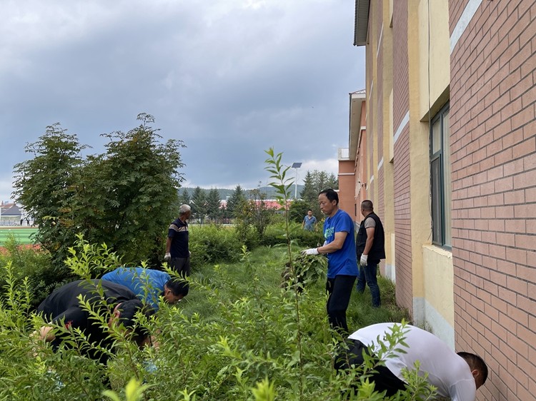 安图县万宝小学:拔草护绿 美化校园 ——万宝小学全体教师拔草活动