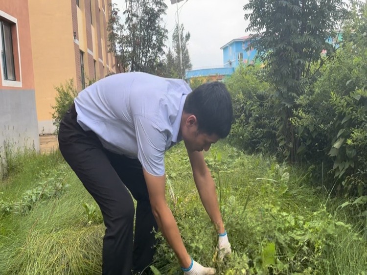 活动中,学校领导率先垂范,带头参加,教师们充分发扬不怕脏、不怕累的精神,撸起袖子,戴起手套,顶着烈阳,完全不惧夏日的高温天气,对校园里的杂草进行地毯式全面清理。拔、铲、装、运……教师们们分工协作,有条不紊,干劲十足,活动现场一片热火朝天的景象。经过教师们们一下午的努力,校园绿地内杂草已基本被清除,校园面貌焕然一新。
