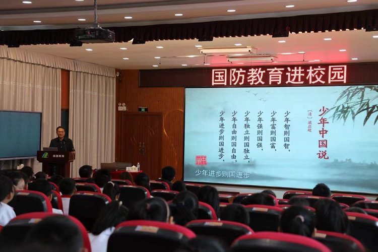 吉林省军区原教导大队政委、省国防教育讲师团成员刘万军教授以《祖国,我是您忠诚的小卫士》为主题,向同学们对何为国防,国防的重要性,新时代国防教育的意义,新时代新形势下的国防使命等方面进行了讲座。他强调,国防意识自古以来就流淌在中华民族血脉之中,去不掉,打不破,是中国人民和中华民族维护民族独立和民族尊严的强大精神动力。讲座中,刘万军教授以师生互动的方式,分享了军旅生涯的收获与感悟,使学生进一步了解军营生活,号召同学们要树立国防意识,增强社会责任感,从自身做起,从小事做起,练好本领,为长大投身祖国建设做好准备。