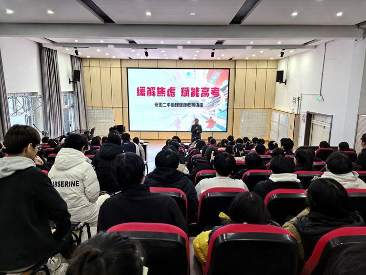 为有效缓解高三学生备考压力,培育学生积极健康心理品质,助力学子从容应对高考挑战,12月15日,安图县第二中学举办了“缓解焦虑 赋能高考”高三心理健康教育讲座。本次讲座由学校心理教师汪琳琪老师主讲,全体高三年级师生参会学习。